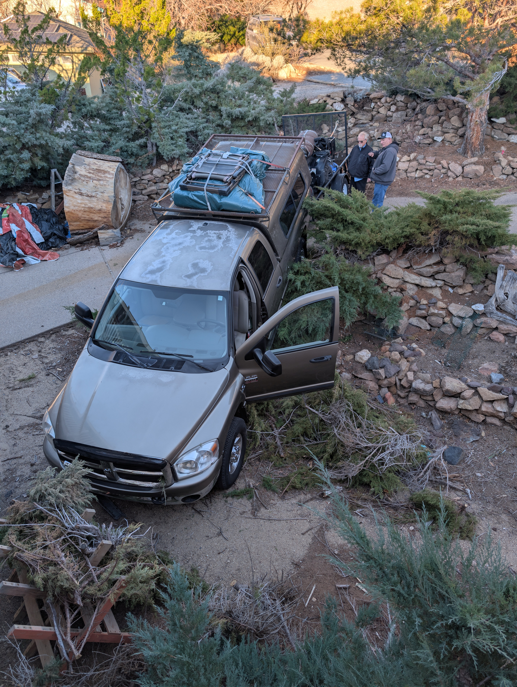 A neighbor dropped by unexpectedly this morning. A good time was had by all, modulo a few hours of vehicle recovery.